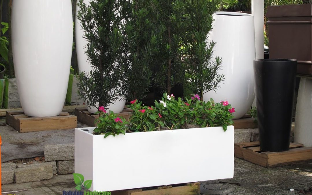 Chậu composite chữ nhật trắng sang trọng, bền vững